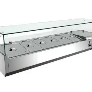 Vitrine réfrigérée, en acier inoxydable, GN 1/3 x 6, -2 +8 °C, L 1500 mm