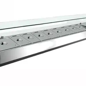 Vitrine réfrigérée, en acier inoxydable, GN 1/3 x 9, -2 +8 °C, L 2000 mm