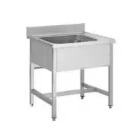 Plonge soudée sur pieds carrés sans étagère, inox AISI 304, L – 600 mm, 1 bac au centre