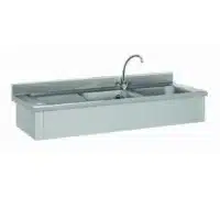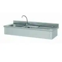 Plonge suspendue adossée 2 bacs 2 égouttoirs L 2400 x l 700 mm