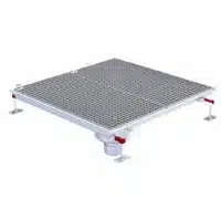 Caniveau téléscopique Epur HygieneFirst avec grilles caillebotis 800 x 800 mm sortie verticale centrée Ø 110 mm