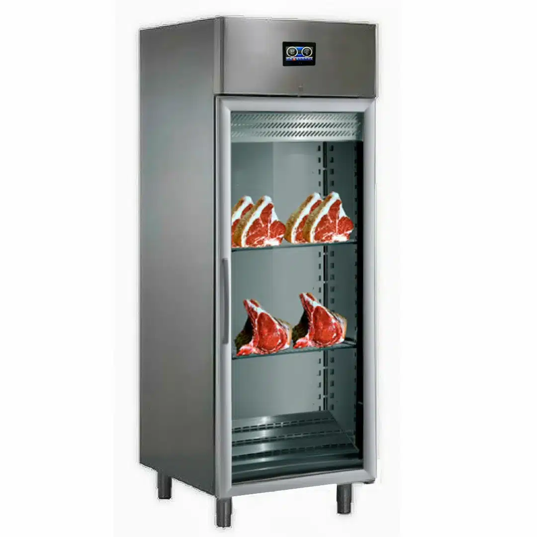 Cette vitrine de maturation permet un contrôle précis de la température et de l’humidité, assurant ainsi une maturation de haute qualité pour vos viandes et un séchage efficace de vos charcuteries.