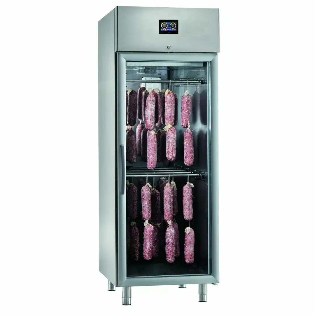 Armoire de séchage 1 porte, conçue pour offrir un contrôle total des paramètres de maturation et de séchage, garantissant des résultats optimaux pour les professionnels de la cuisine.