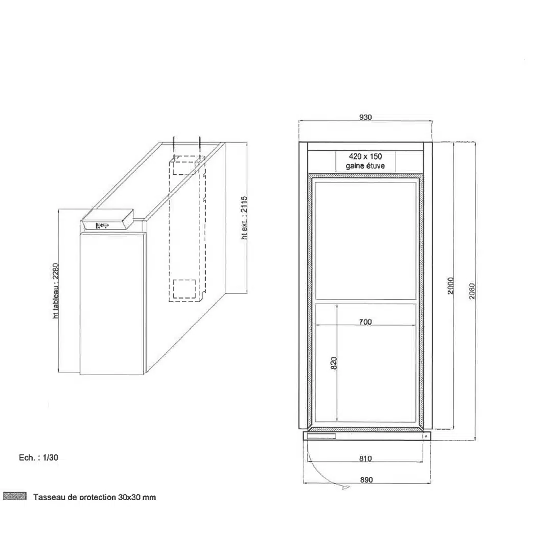 Armoire étuve sans sol type EA2 en 600×800 pour 2 chariots 700 x 820 x 1870 mm sur mesure