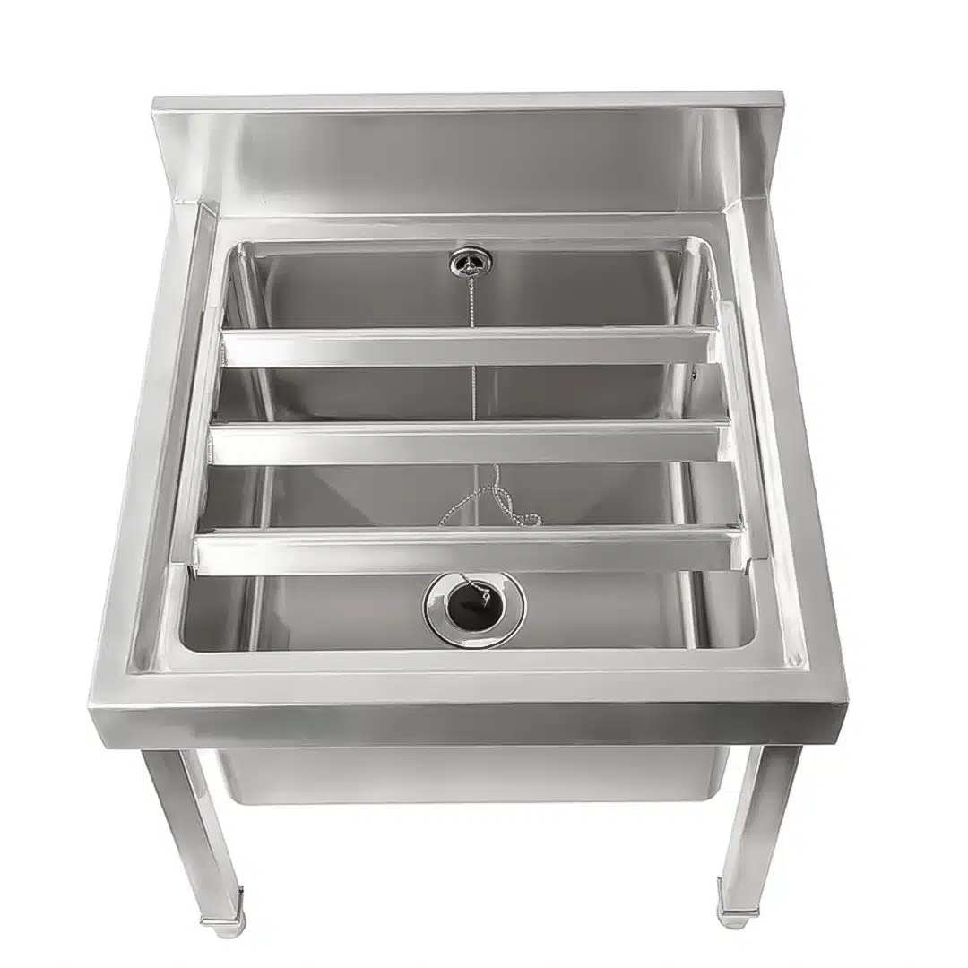 - Construction en acier inoxydable : Fabriqué en inox 430 pour la cuve et inox 410 pour les pieds, il est durable et aussi résistant à la corrosion.