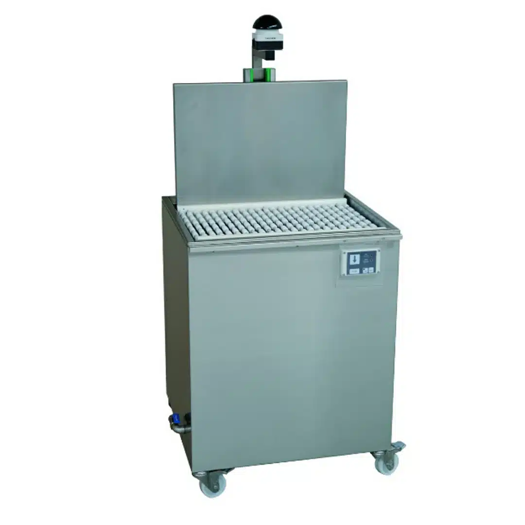 Découvrez notre bac de rétraction ATT46A, d’une capacité de 100 litres, alliant qualité et ergonomie. Fabriqué en Allemagne, il est robuste et fiable, avec une protection IP 65. Sa cuve en inox à double paroi est montée sur roulettes blocables, et son dosseret haut protège contre les projections d’eau. Le système d’immersion fonctionne sans air comprimé pour une utilisation simplifiée.
