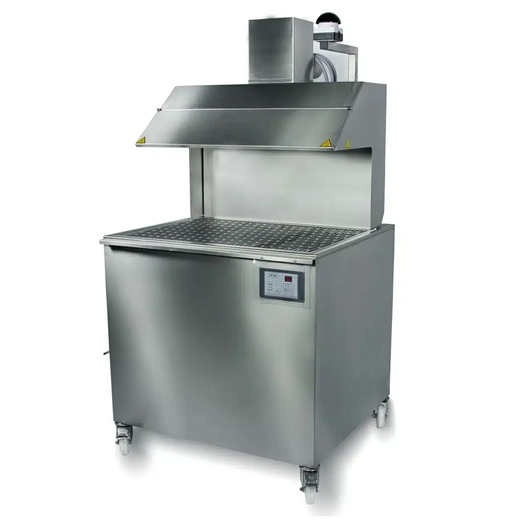 Découvrez notre bac rétraction ATT86 de 180 litres, fabriqué en Allemagne. Robuste et fiable, il bénéficie d’une protection IP 65. Sa cuve en inox à double paroi est montée sur roulettes blocables, et son dosseret haut protège des projections d’eau. Le système d’immersion et de relevage mécanique fonctionne sans air comprimé pour une utilisation simplifiée.