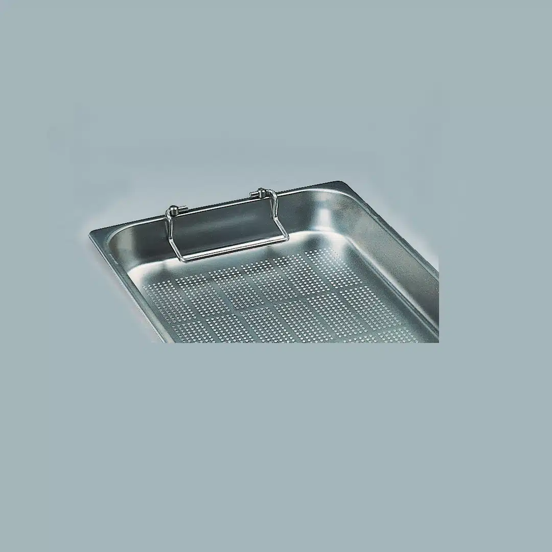 Bac gastronorme acier inox perforé avec anses pliantes GN 2/1 650 x 530 mm