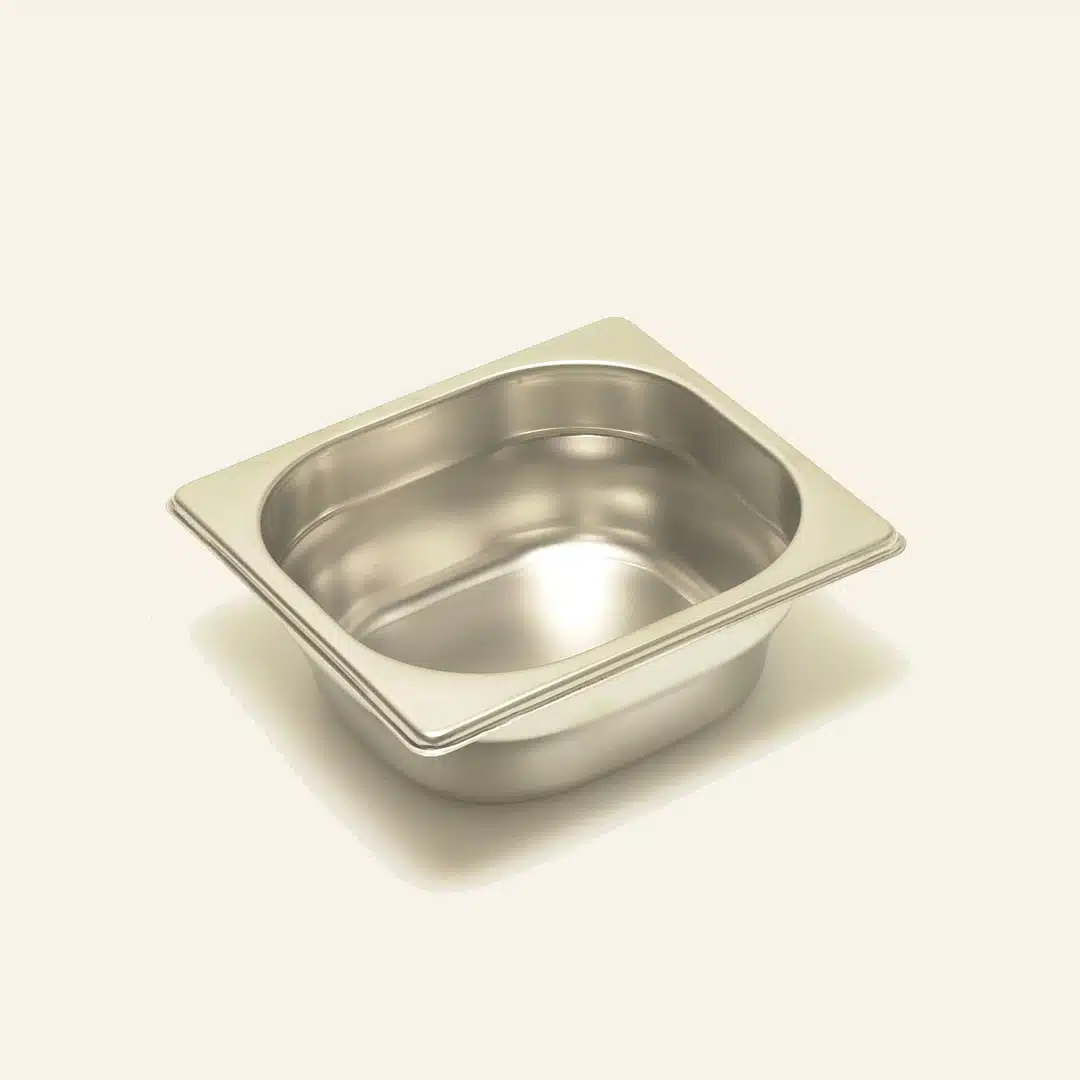 Bac inox professionnel gastronorme, GN1/6, utilisé pour la congélation, le stockage, la manutention, la cuisson et la distribution de vos préparations.