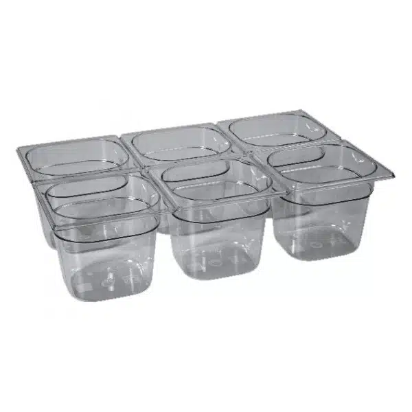 Bac gastronorme en copolyesther « Tritan™ », type GN1/6, sans Bisphénol A pour le stockage et le transport des produits alimentaires.