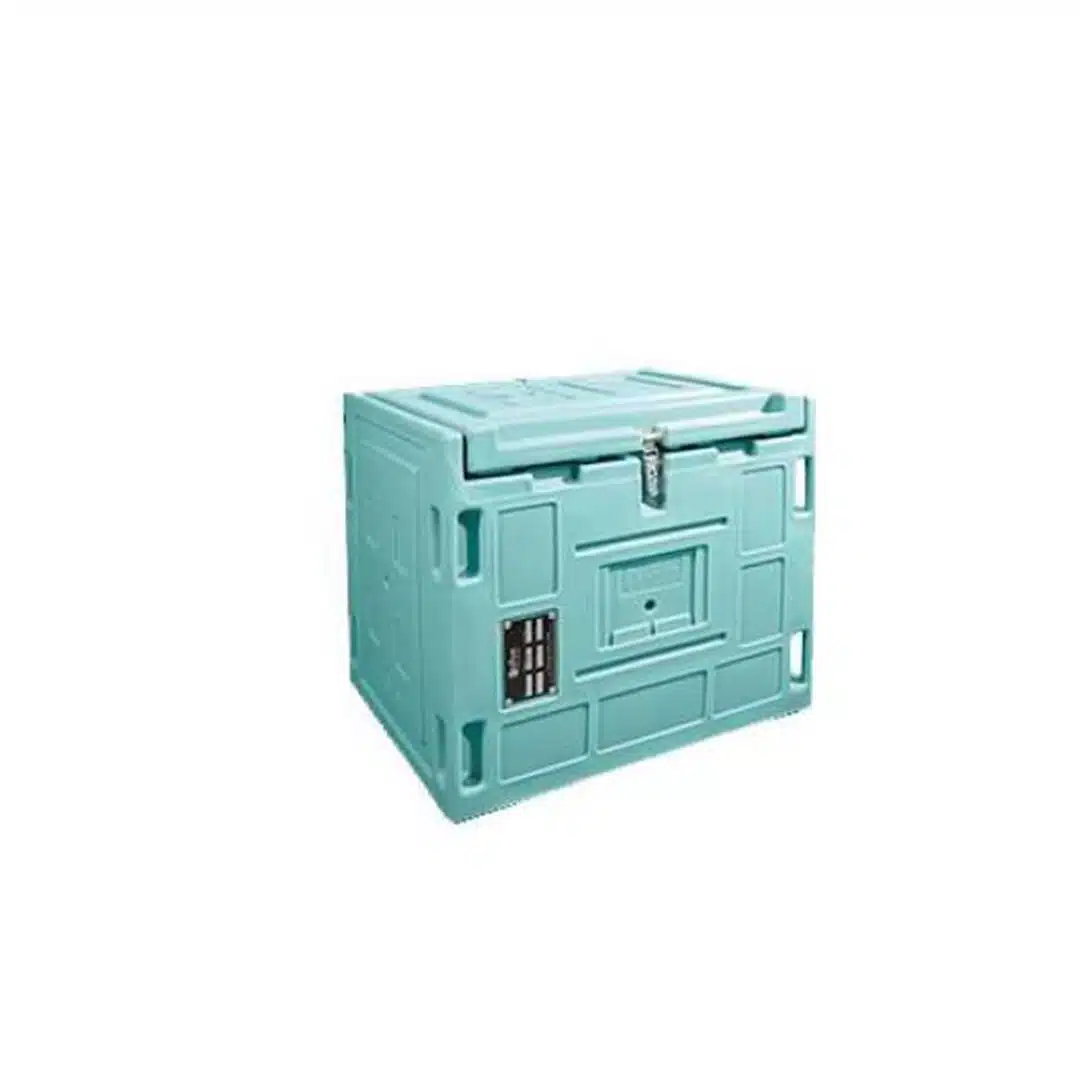 Conteneur professionnel de stockage qui convient parfaitement à de nombreuses applications : distribution alimentaire, logistique pharmaceutique ou transport industriel. Fabriqué en polyéthylène de qualité alimentaire, il présente un design rotomoulé monobloc avec support plaque eutectique moulé dans la masse et un système caisse-couvercle articulé s’ouvrant à 115°.