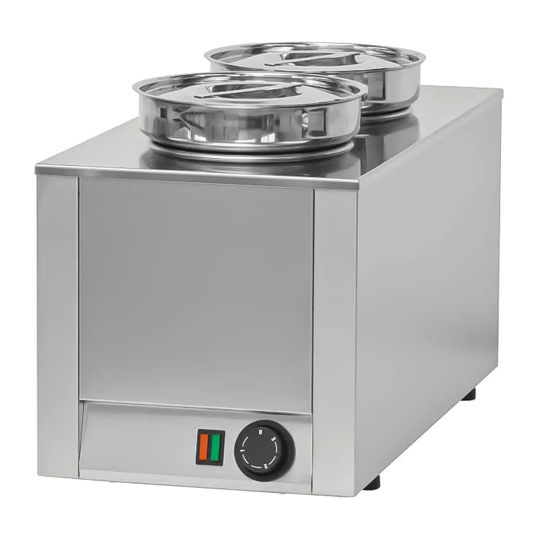Bain marie professionnel pas cher à sauce 2 cuves, pour la préparation et le conditionnement de produits alimentaires dans le secteur agroalimentaire.