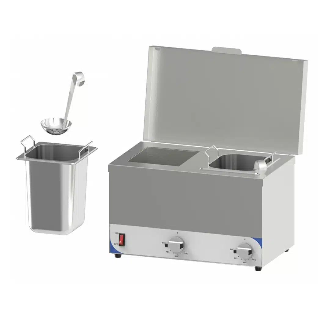 Investissez dans notre bain-marie à sauce compact 2 cuves pour un service impeccable et une satisfaction client garantie, même dans les espaces réduits.