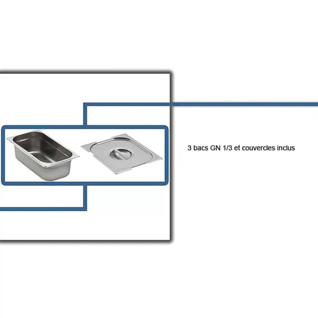 Étiquettes : bain marie eau chaude ou froide, bain marie professionnel, materiel pour snacking, materiel snack, materiel snack pas cher, materiel snack professionnel
