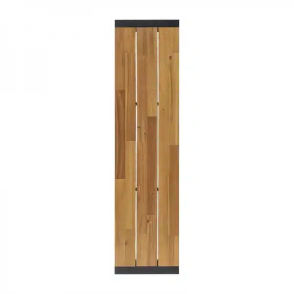 Le plateau en bois d’acacia, pré-huilé pour une meilleure longévité, affiche des teintes naturelles et chaleureuses qui complètent parfaitement la structure en acier noir mat. Ce contraste entre le bois et l’acier donne en effet un look industriel unique, idéal pour moderniser vos espaces de restauration ou vos terrasses.