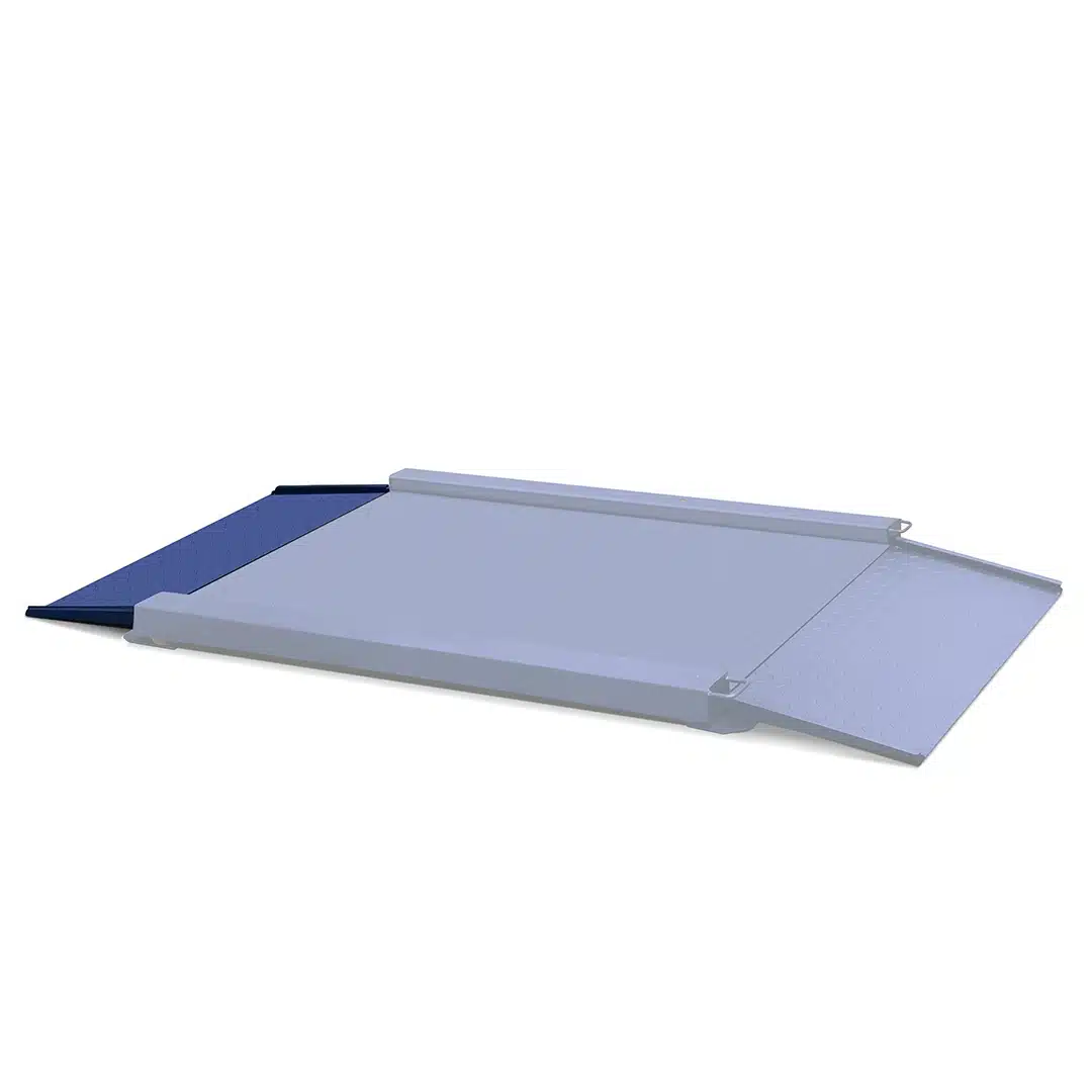 Plate-forme de très faible hauteur (50 mm) avec rampe d’accès facile et deuxième rampe de sortie en option.