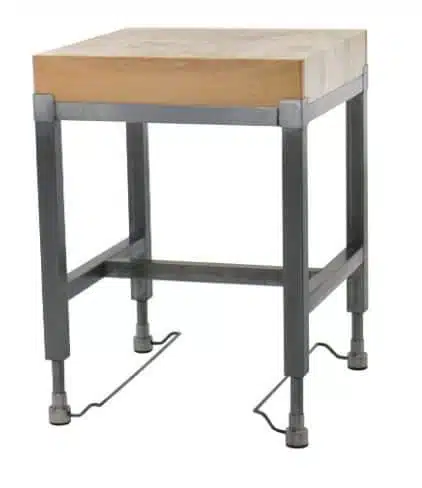 Billot central inox 304 soudé avec bloc poly ou bloc bois épaisseur 100 mm, réglable en hauteur 760/980 mm par système mécanique