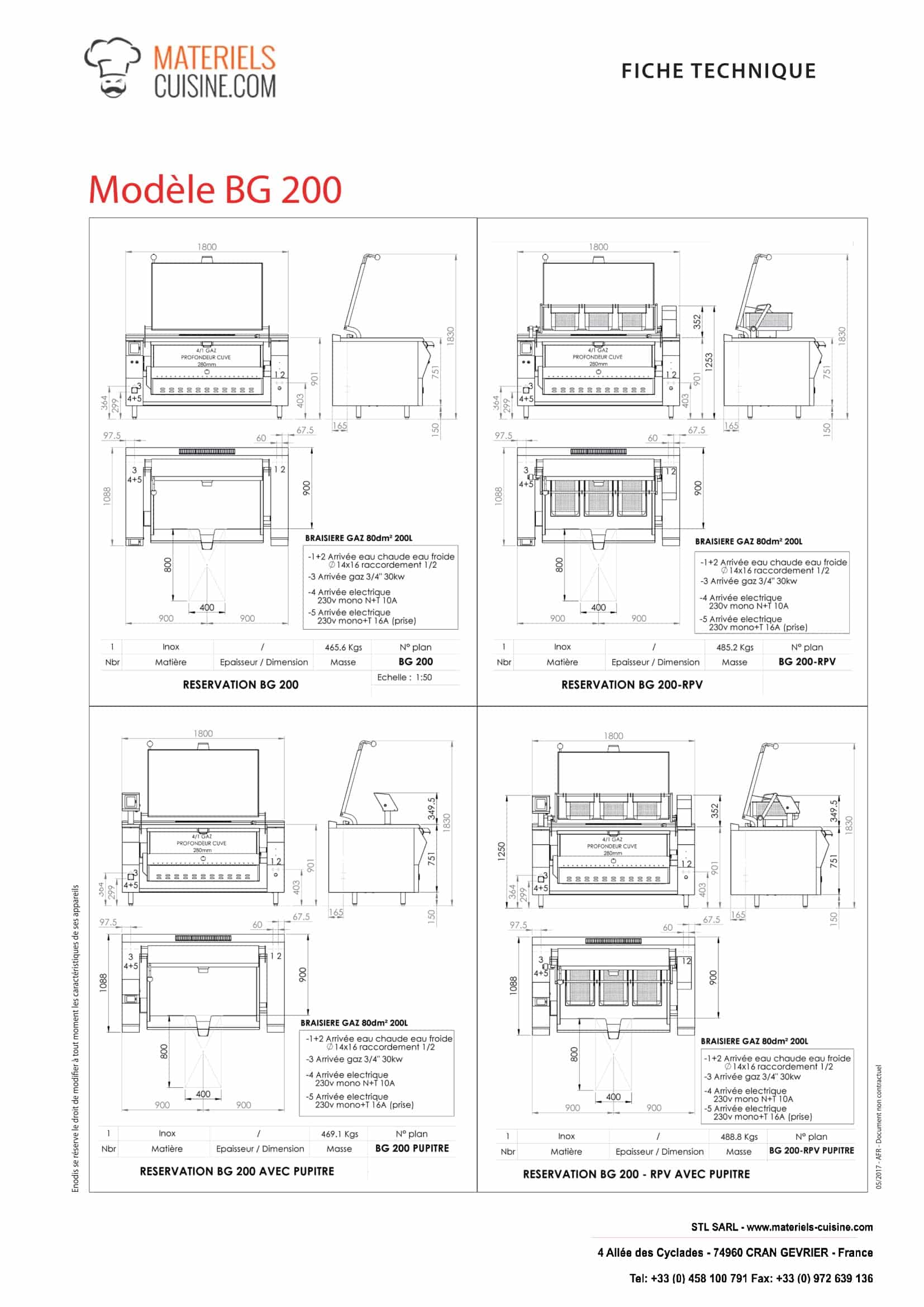 Braisière gaz basculante – GN4/1 – 200l – 80dm² – 30kw – 1800x1000x900mm