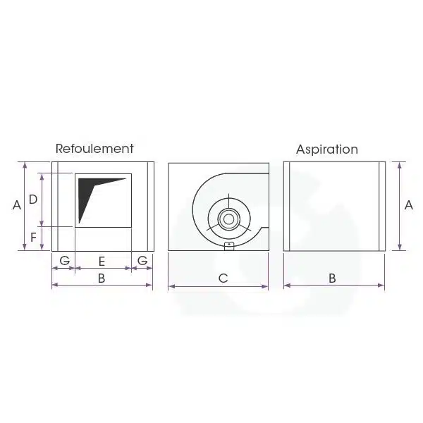 Moto-ventilateur double ouïe en accouplement direct monophasé.