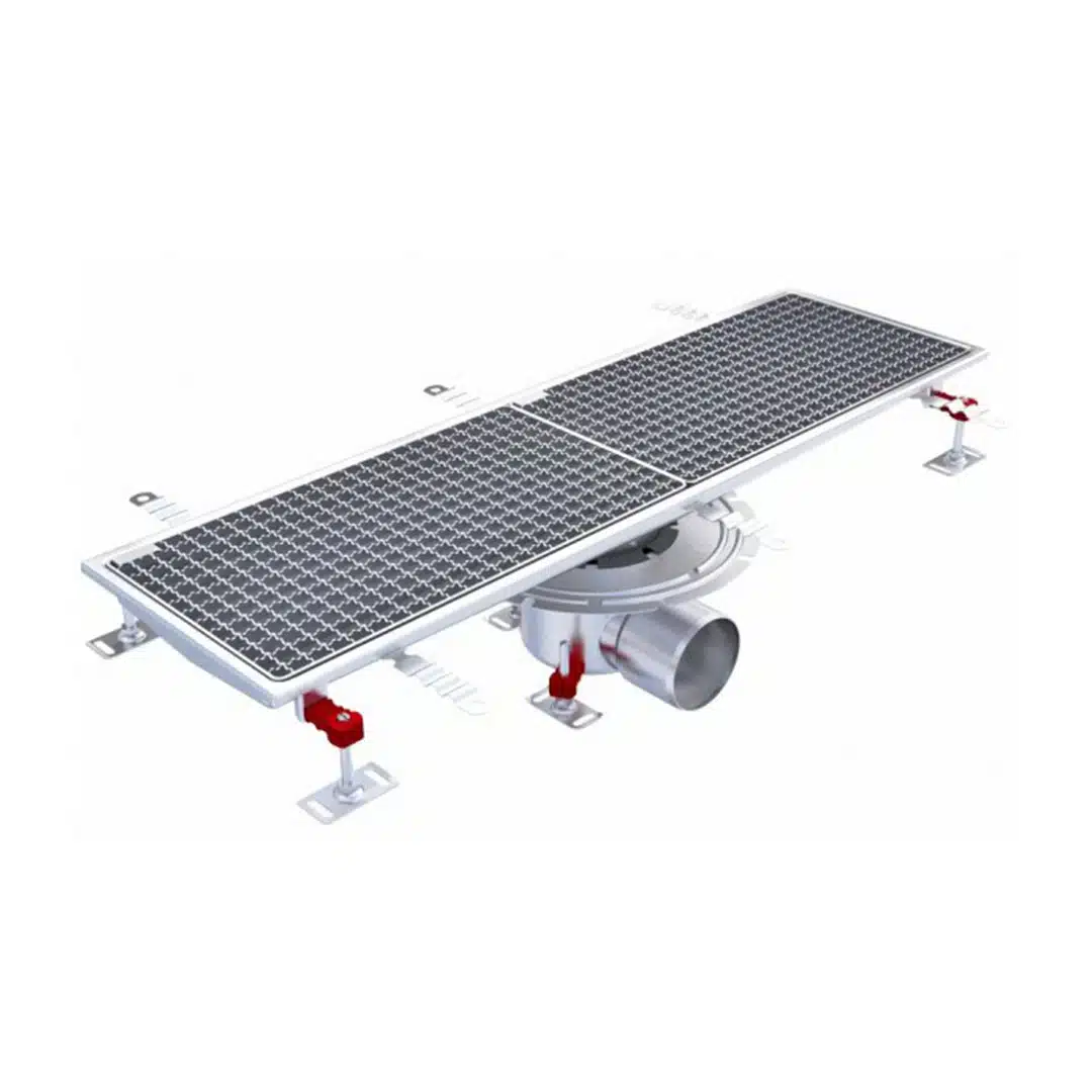 - Grille : Caillebotis antidérapant inclus, maille de drainage 19×19 mm, crantée et passivée, bords arrondis pour éviter les glissades et les coupures