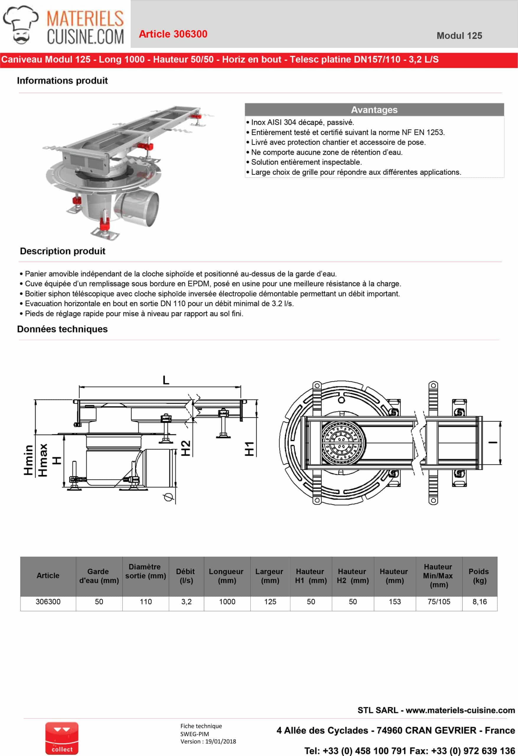 - Normes respectées : Entièrement testé et certifié selon la norme NF EN 1253, garantissant sécurité et fiabilité.