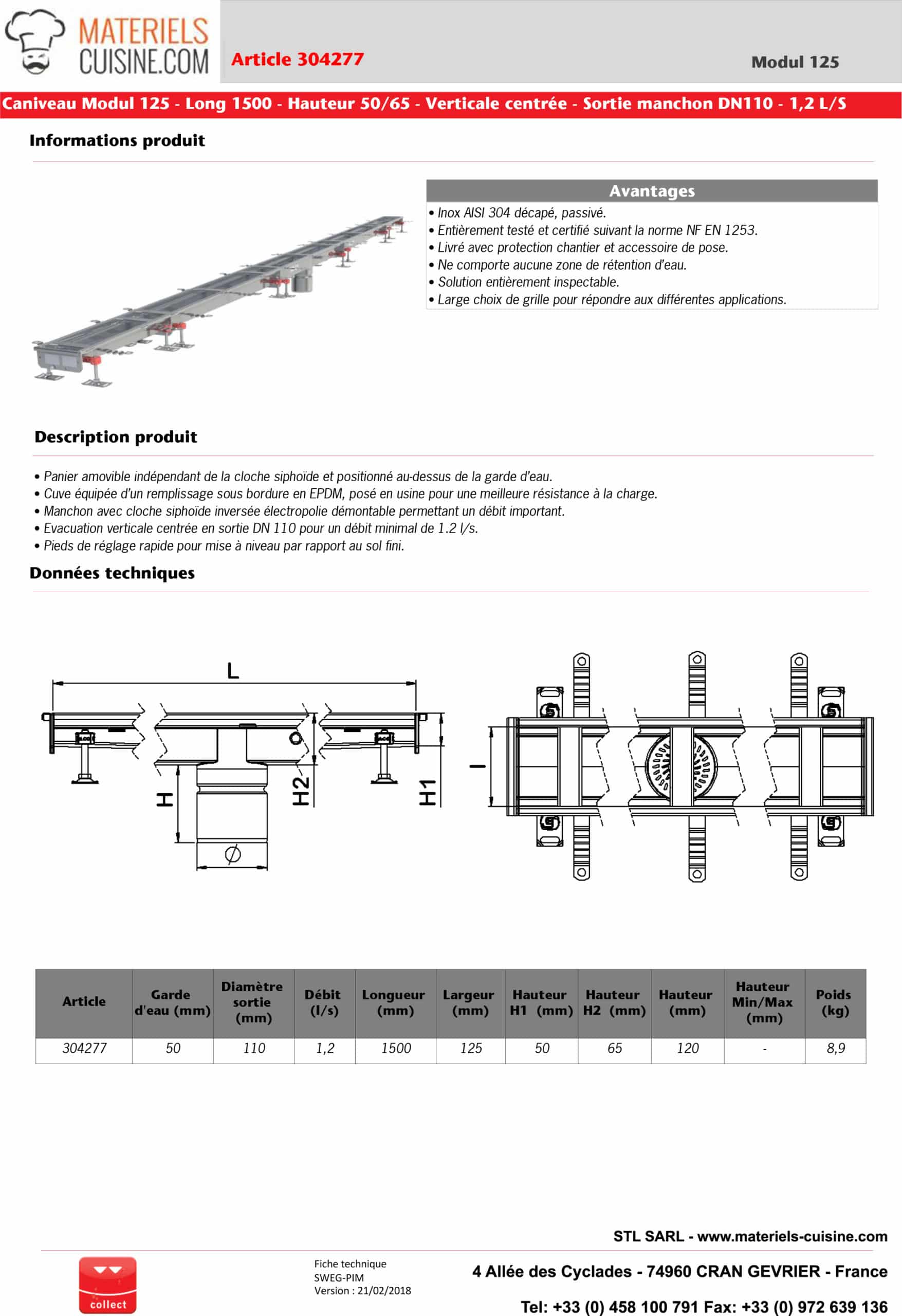 - Norme NF EN 1253 : Entièrement testé et certifié