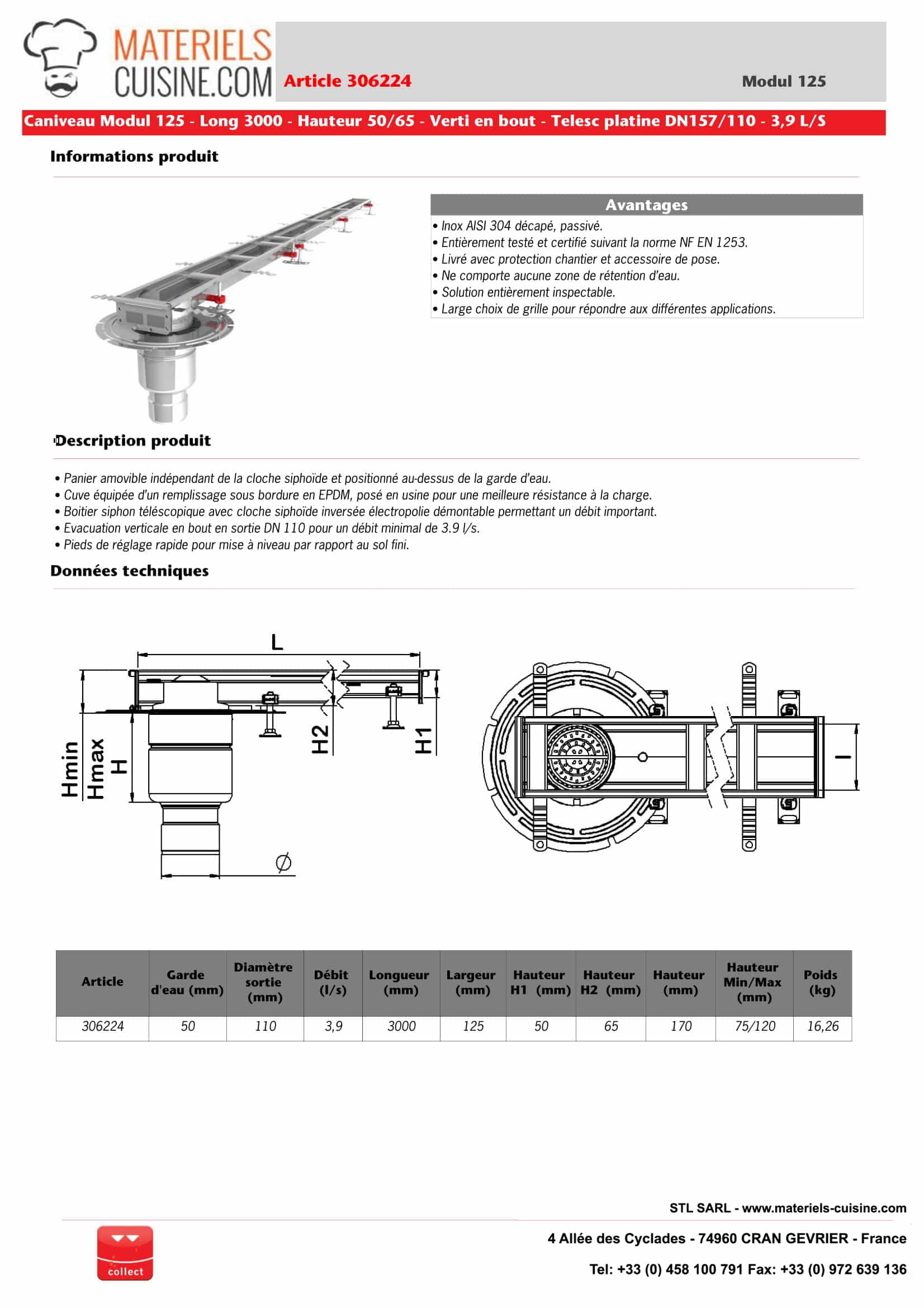 • Conformité aux Normes : Entièrement certifié selon la norme NF EN 1253, garantissant fiabilité et sécurité.