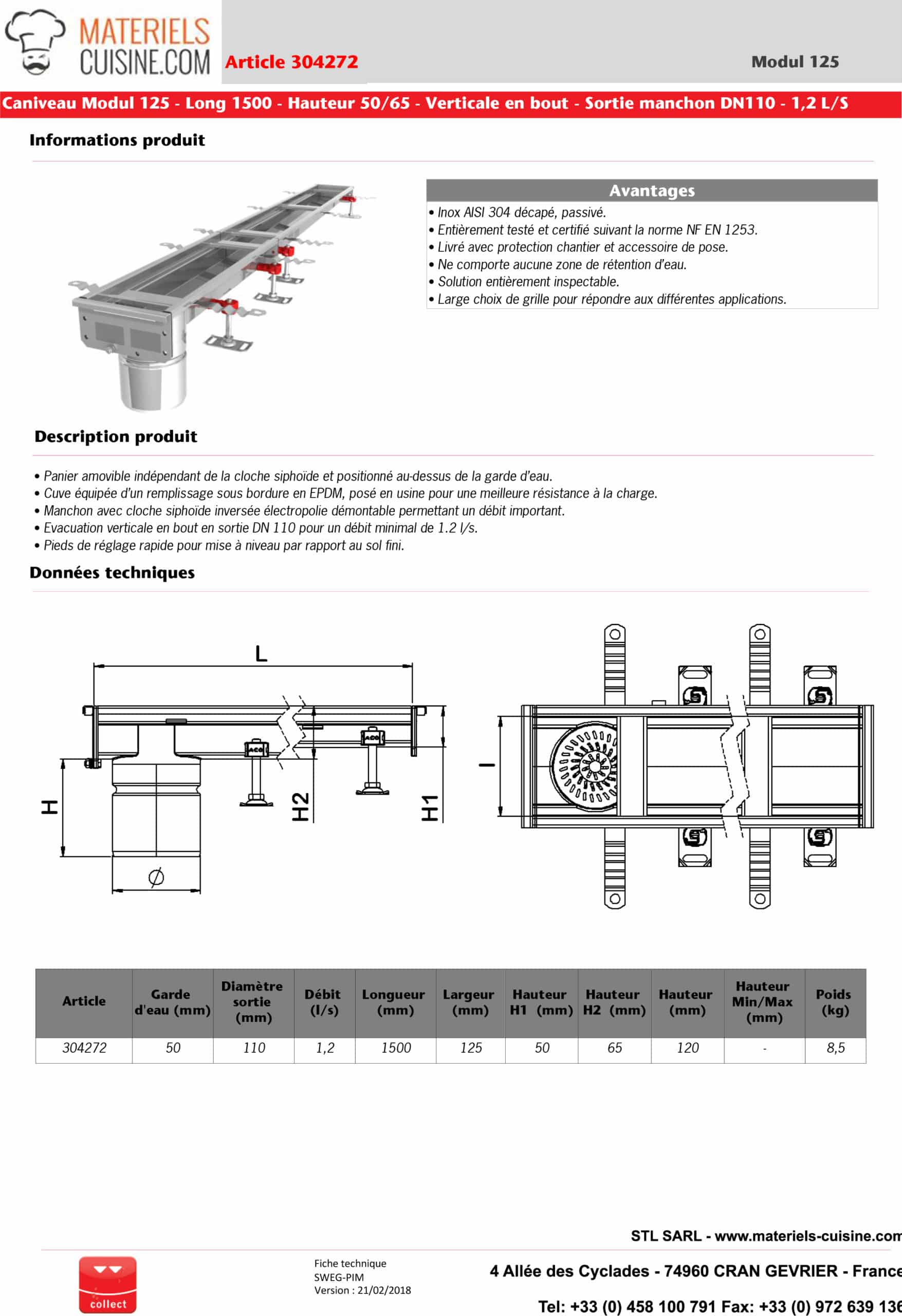 • Norme NF EN 1253 : Entièrement testé et certifié