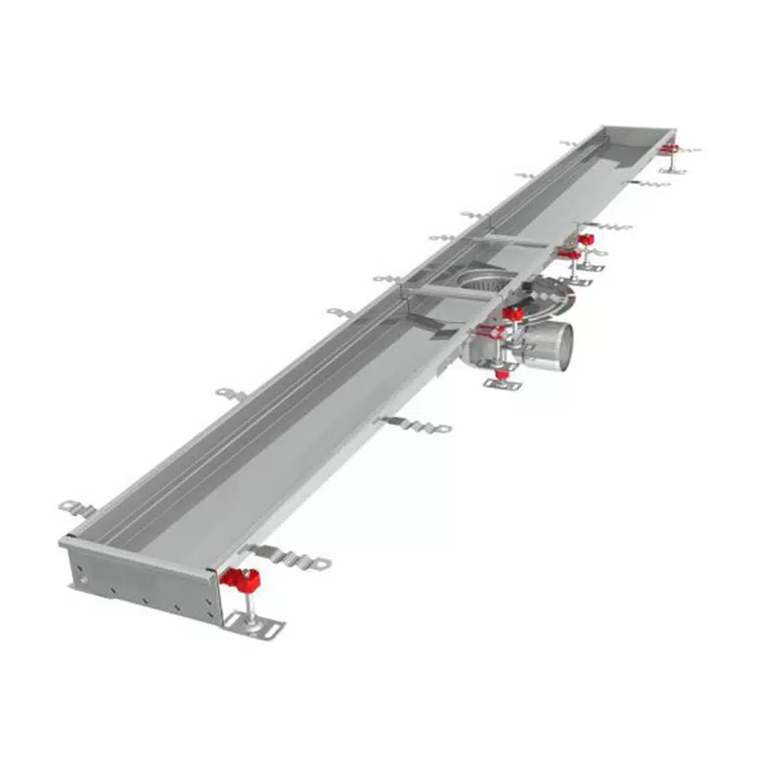 Caniveau en Inox Modul 200 L 3000 mm avec Sortie Horizontale Centrée Boîtier 157/DN110