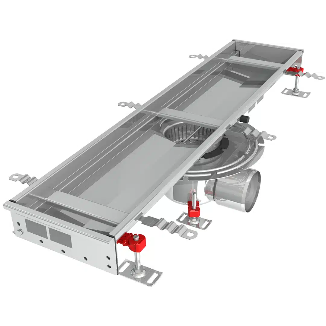Pour simplifier encore davantage l’installation, ce caniveau est équipé de pieds réglables. Ils vous permettent de mettre le produit parfaitement à niveau par rapport au sol fini, garantissant ainsi une installation rapide et sans encombre.