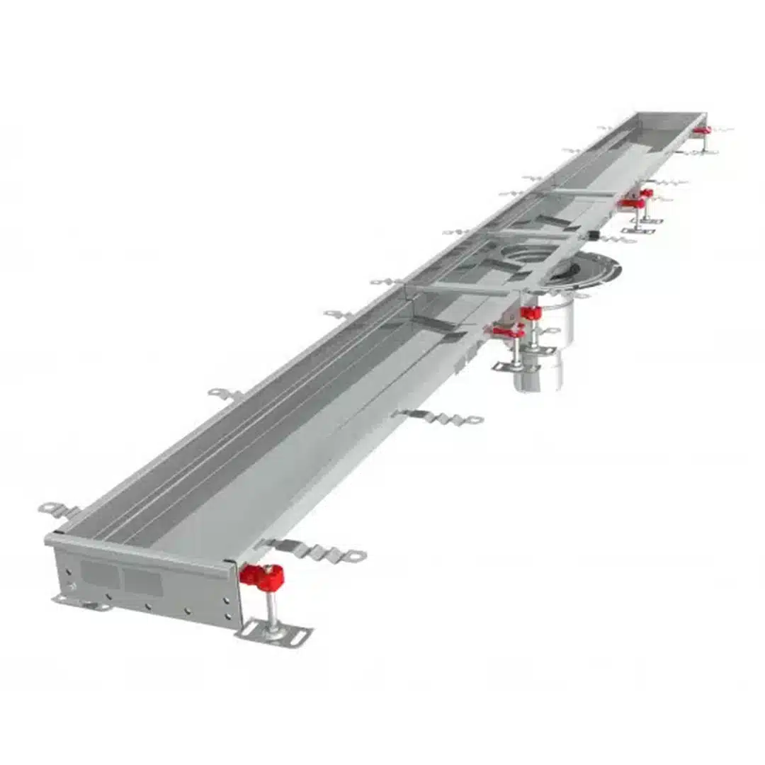 Grâce au boîtier siphon télescopique et à la cloche siphoïde inversée électropolie démontable, ce caniveau permet un débit important. De plus, l’évacuation verticale centrée en sortie DN 110 assure un débit minimal de 3,9 l/s, garantissant une performance optimale.