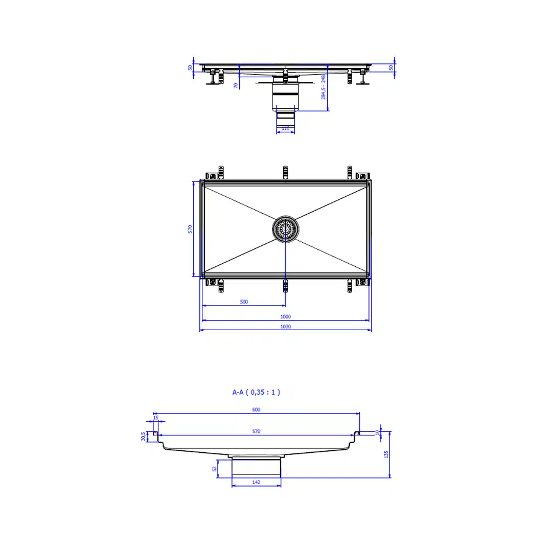 Avantages du Caniveau de sol 1000 x 570 mm :