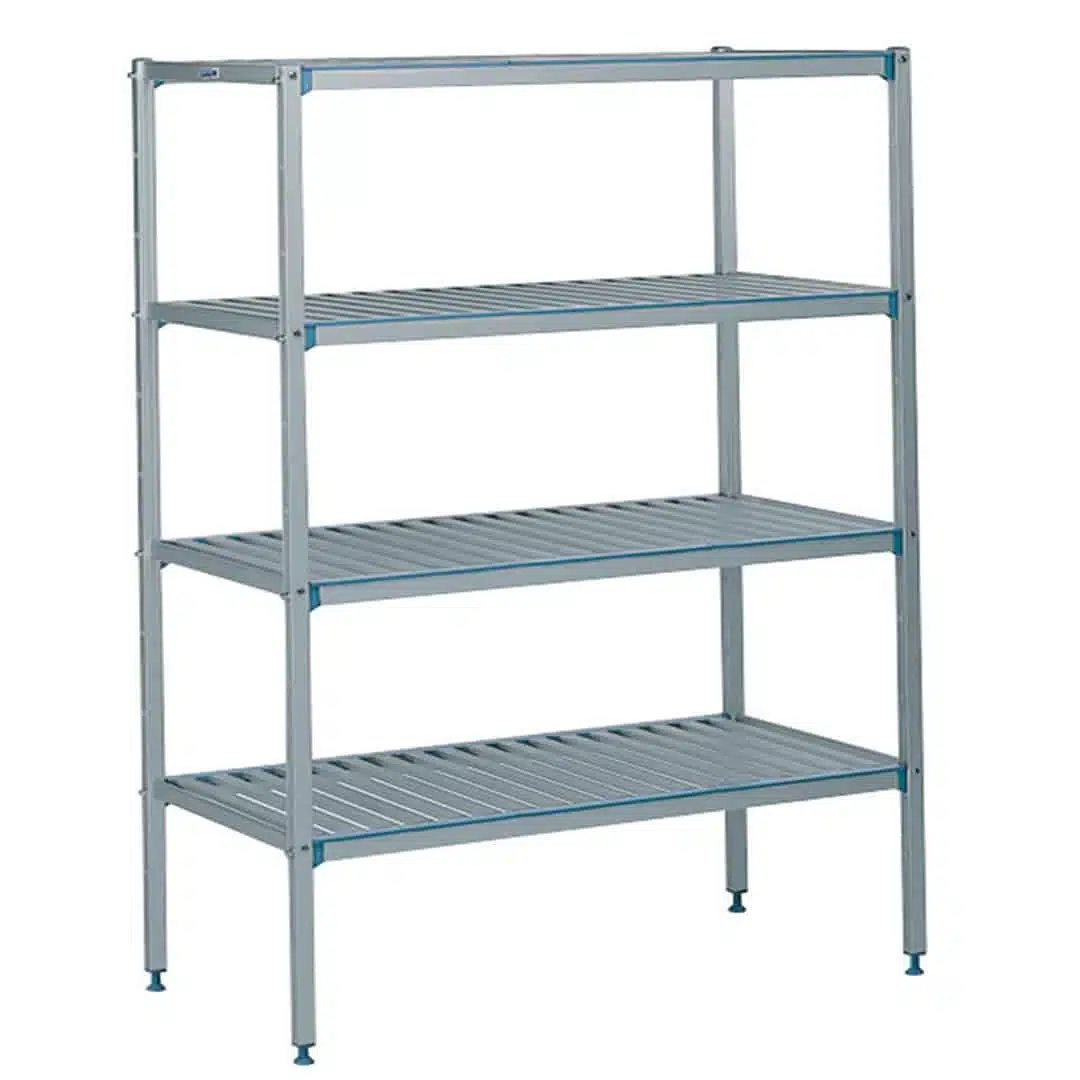 Casier à batterie aluminium 4 niveaux L 1500 mm avec clayettes, structure robuste en aluminium anodisé, idéal pour le rangement des matériels en cuisine, facilite aussi l’accès à vos ustensiles.