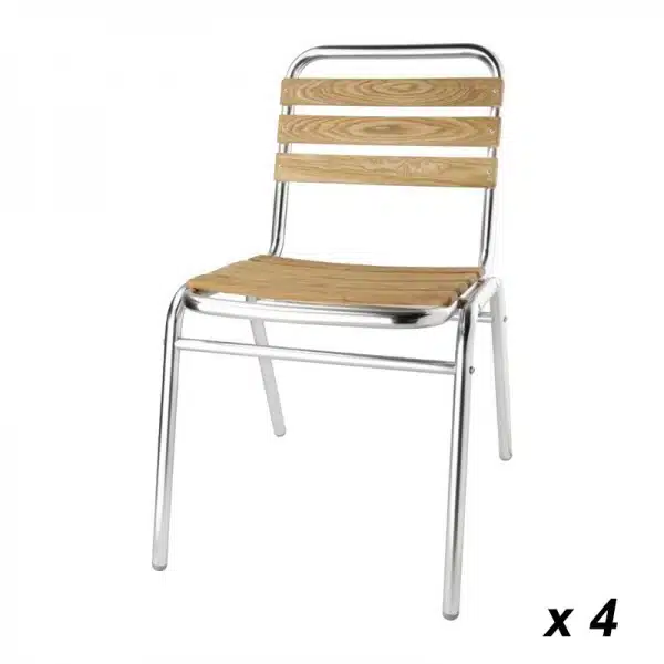Chaises bistro frêne et aluminium empilables hauteur d’assise 435 mm lot de 4