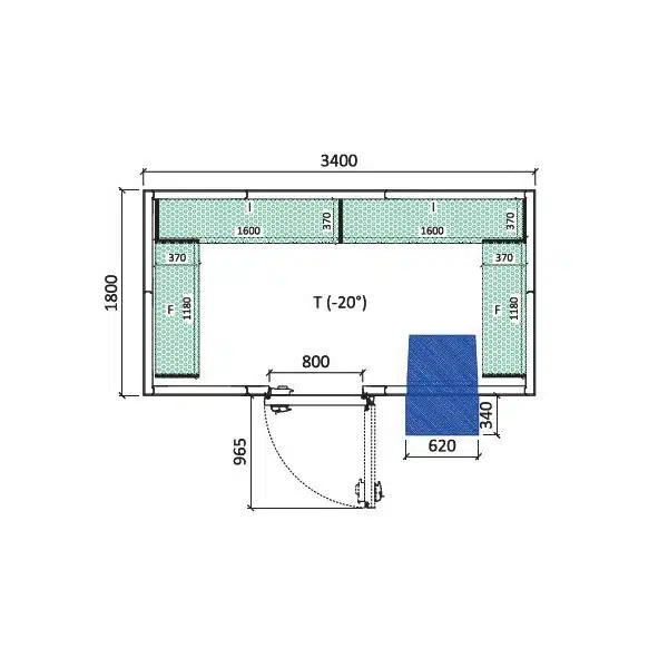 Chambre froide negative L 3400 X P 1800 mm avec rayonnage et monobloc