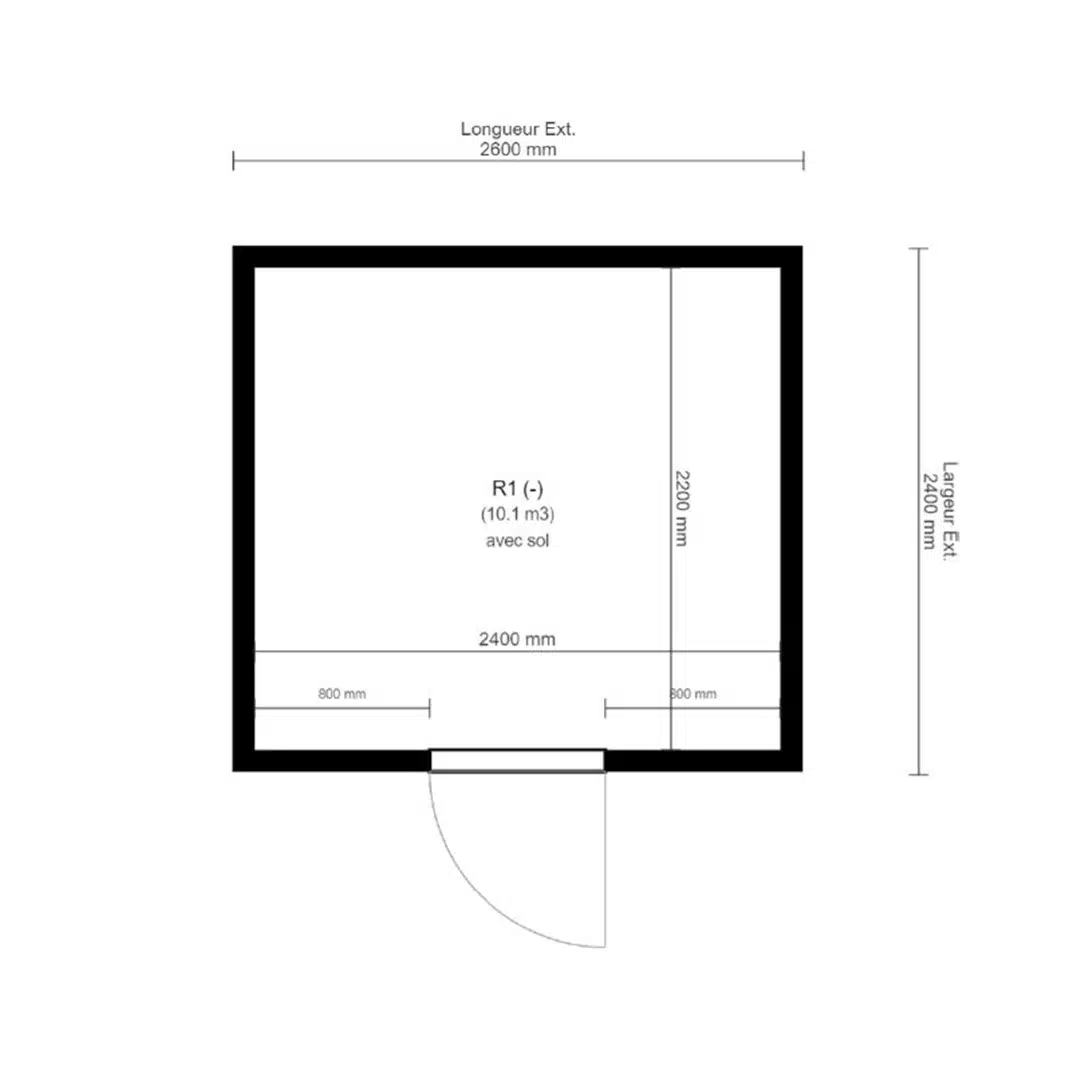 Dimensions extérieures: L 2600 x P 2400 H 2120 mm