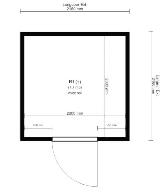 Dimensions extérieures: L 2160 x P 2160 x H 2080 mm