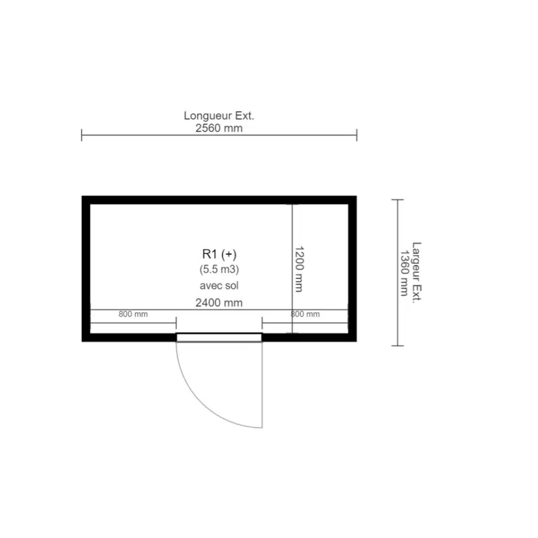 Dimensions extérieures: L 2560 x P 1360 x H 2080 mm Ep. 80 mm