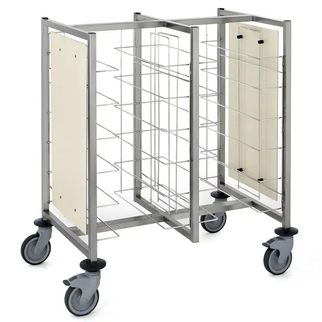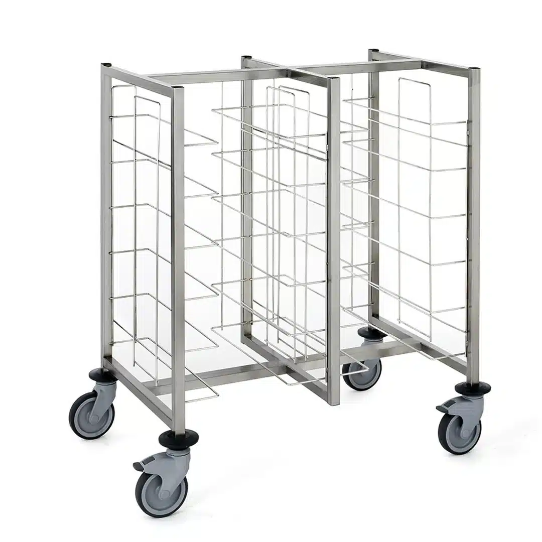 Chariot cafétéria 2 x 6 niveaux, en acier inoxydable, parfait pour le rangement et le débarrassage des plateaux.