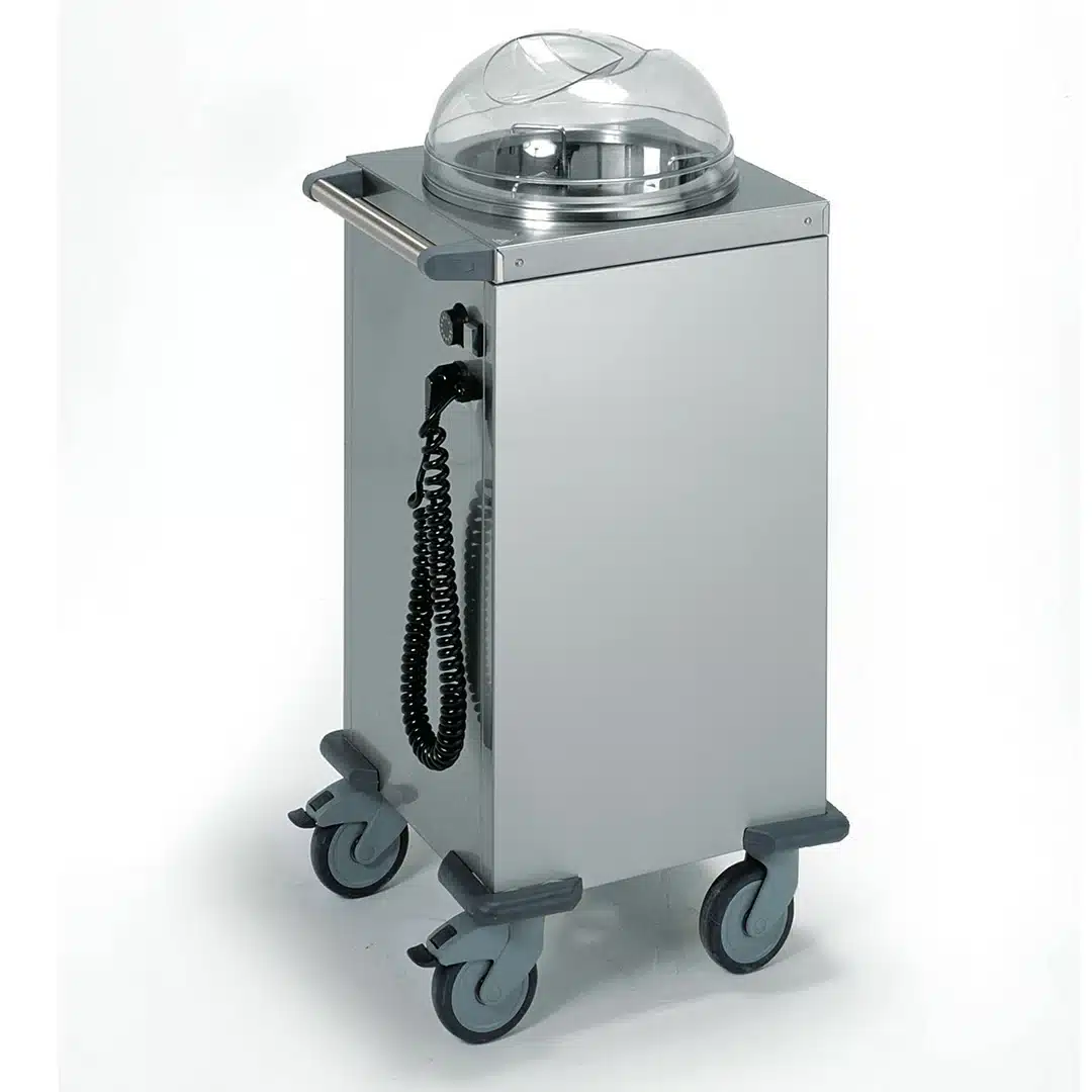 Chariot chauffant à assiette avec couvercle, en acier inoxydable, conçu pour le stockage de vos assiettes , tout en les maintenant au chaud.
