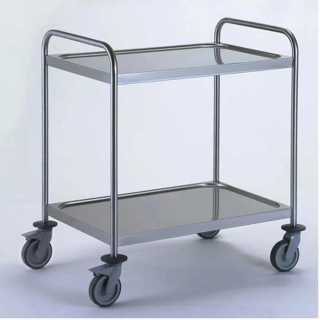 Desserte cuisine inox, pour le transport des produits alimentaires et divers ustensiles dans le domaine CHR, essentiellement gastronomique.