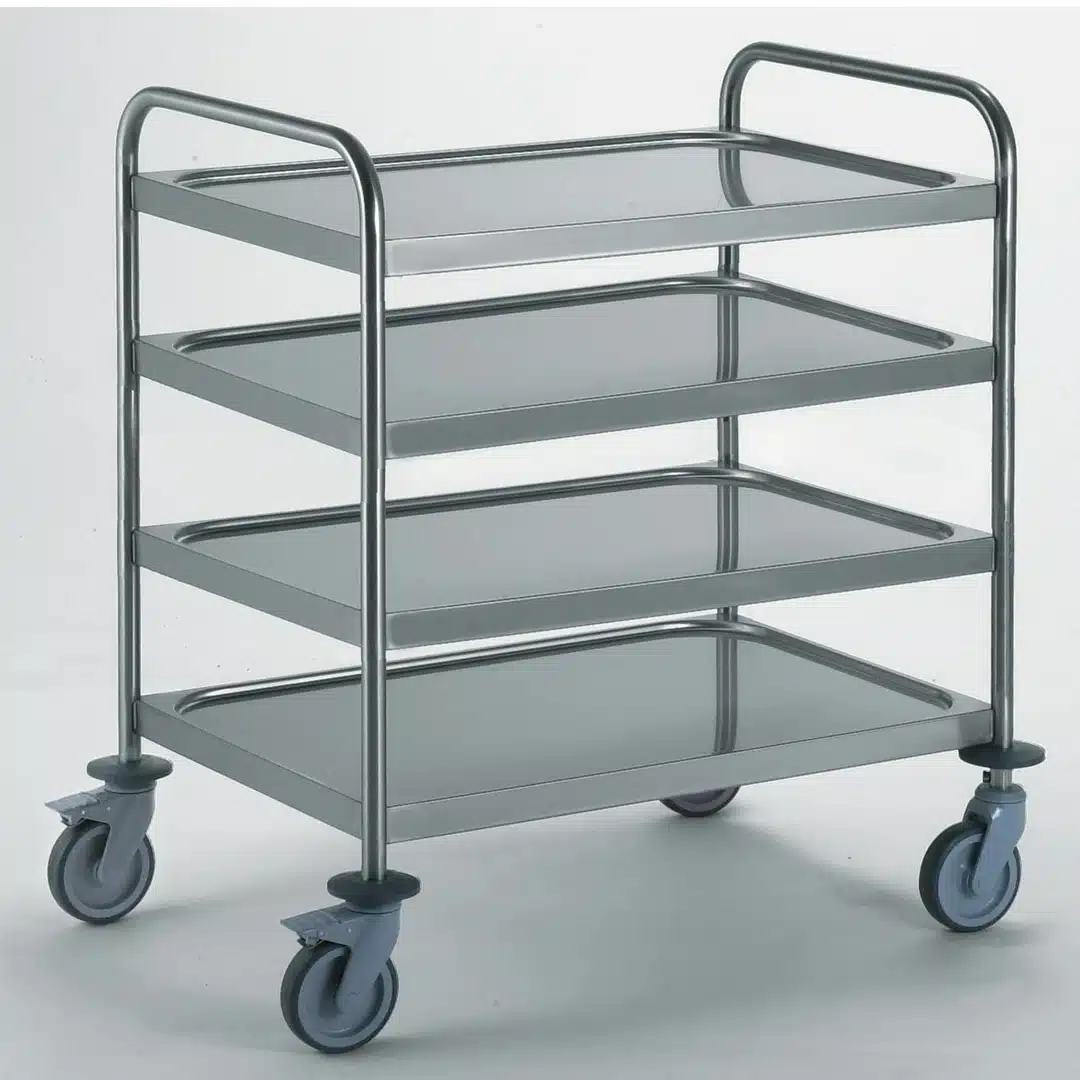 Chariot de service acier inoxydable avec 2 arceaux 4 plateaux 800 x 530 mm