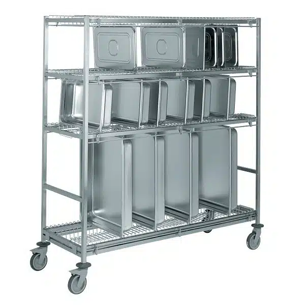 Chariot de stockage grand modèle, pour égouttage et stockage des bacs, grilles et couvercles GN.