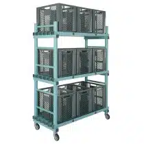 Chariot équipement porte bacs, 3 niveaux, capacité 9 bacs