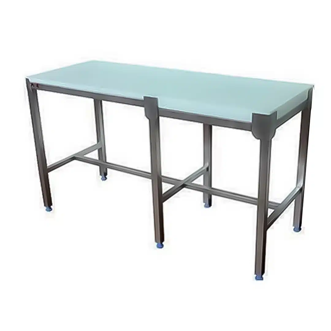 Piètement en tube de 40 x 40 mm avec entretoises et traverse basse (hauteur 160 mm)