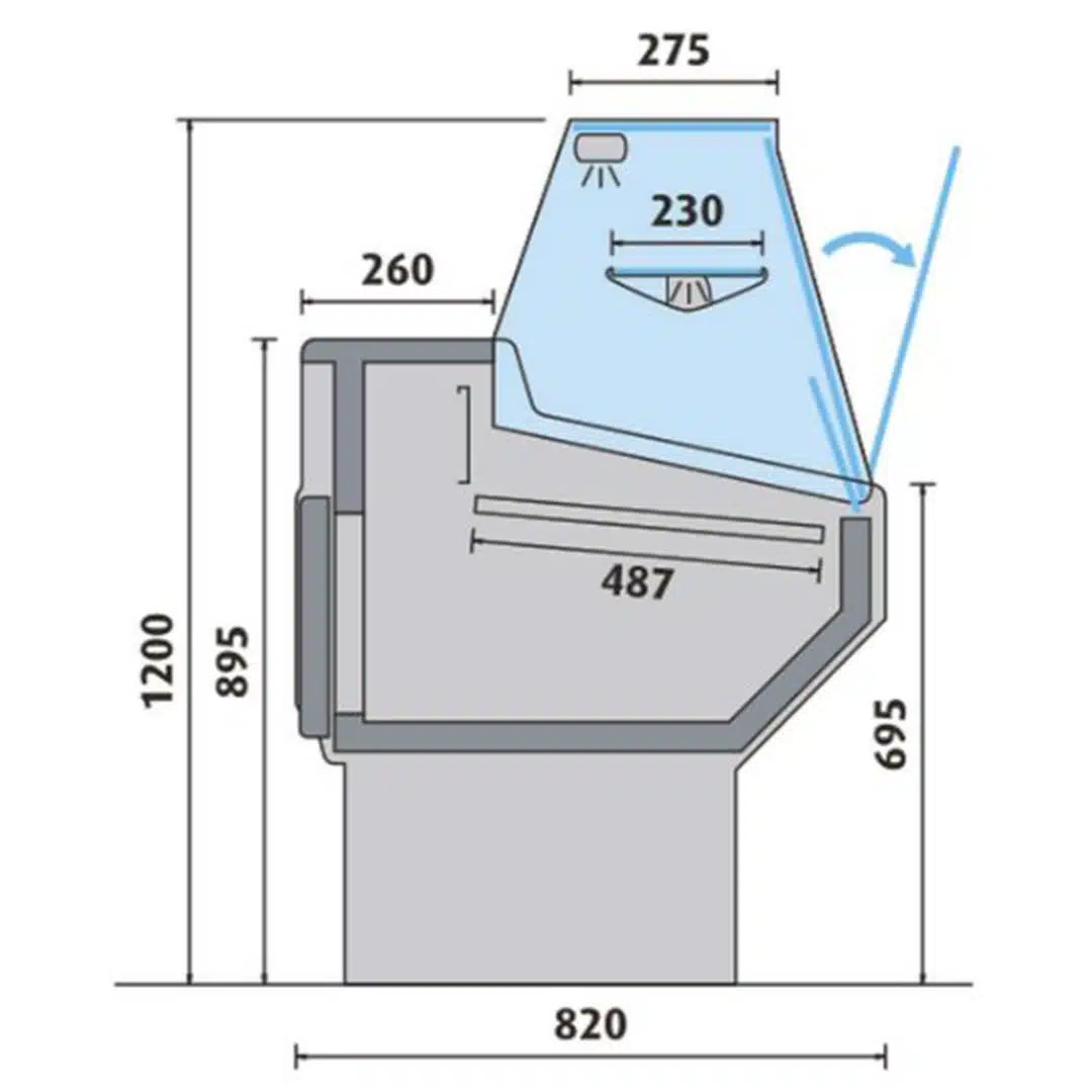 Comptoir d’exposition ventilé, vitre droite, avec réserve