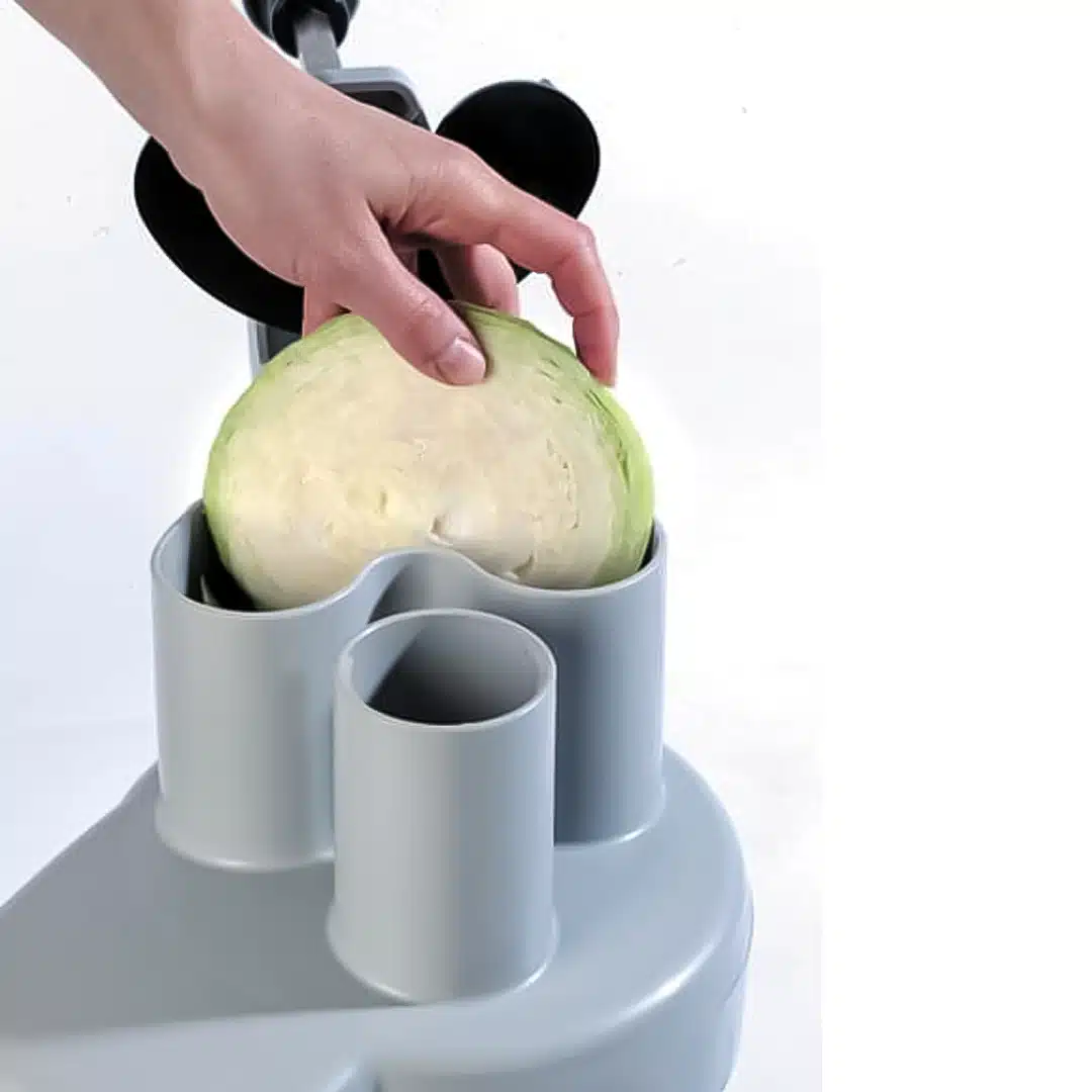Cette grande goulotte de 104 cm² facilite la coupe des légumes volumineux. Idéale pour les choux, oignons ou tomates, elle garantit un travail rapide et efficace.