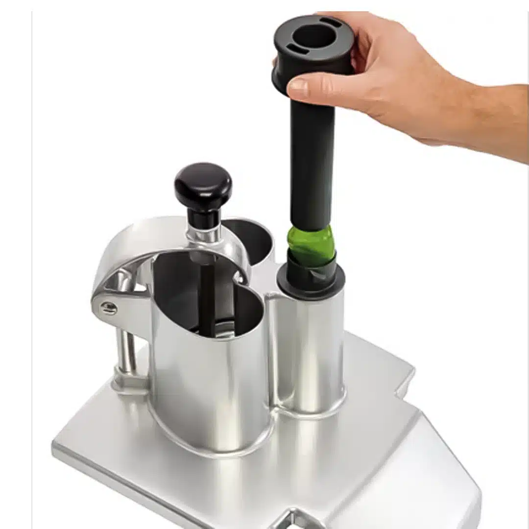 Grâce à sa grande goulotte de 139 cm², ce coupe-légumes professionnel permet de traiter des légumes volumineux comme le chou ou le céleri sans effort. Mieux encore, vous pouvez couper jusqu’à 10 tomates en une seule opération, ce qui optimise considérablement votre productivité.