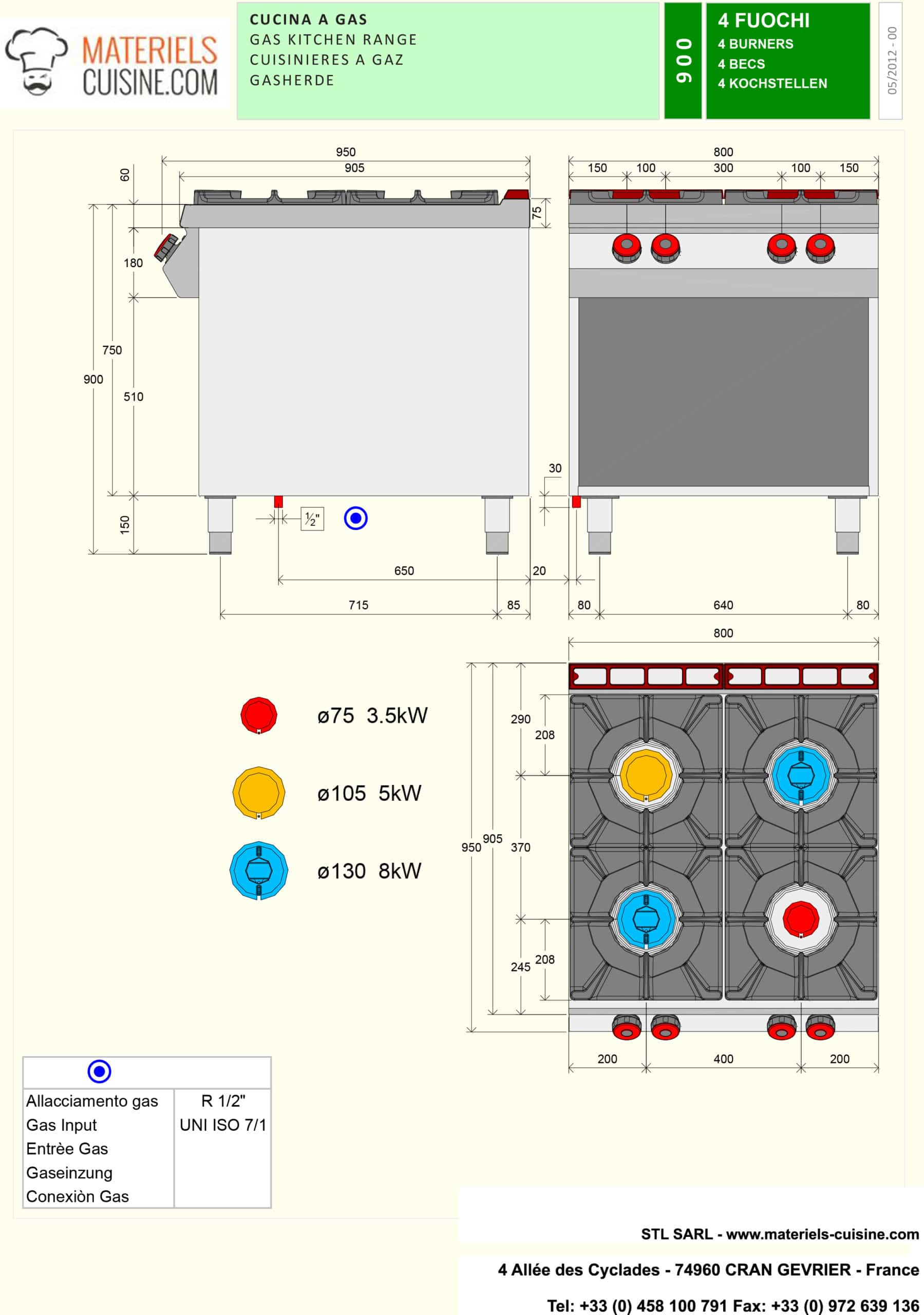 Fabrication en acier inox finition Scotch Brite avec raccords en biseau, plans imprimés épaisseur 20/10 avec bassins amovibles et arêtes arrondies pour la plus grande propreté. Brûleurs verticaux de 3,5 Kw, 5 Kw et 8 Kw mono et double couronne.