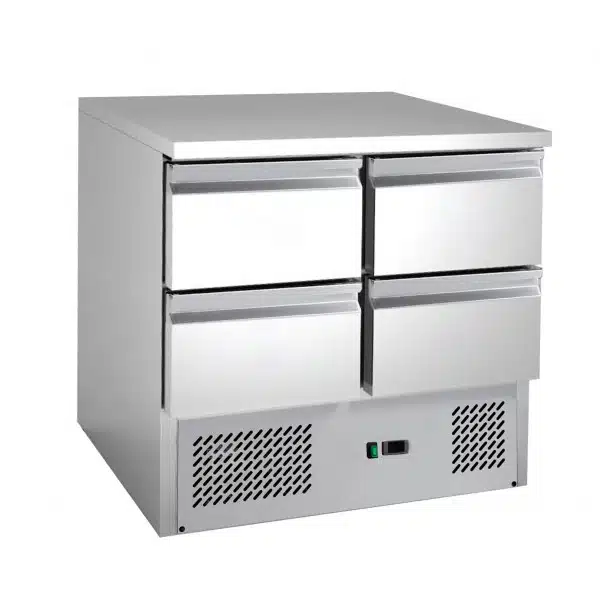 Desserte centrale type saladette dessus inox réfrigérée 4 tiroirs GN1/1 -65